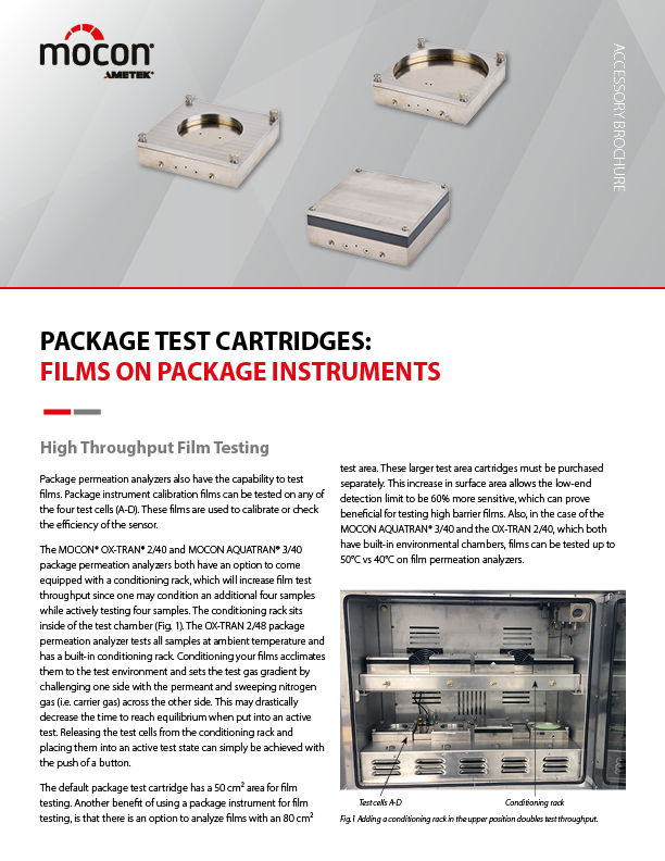 Accesorios para analizadores de permeación: Cartuchos de prueba de paquetes