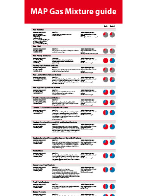Guía de mezclas de gas MAP con O2, CO2 y N2 en diferentes tipos de alimento