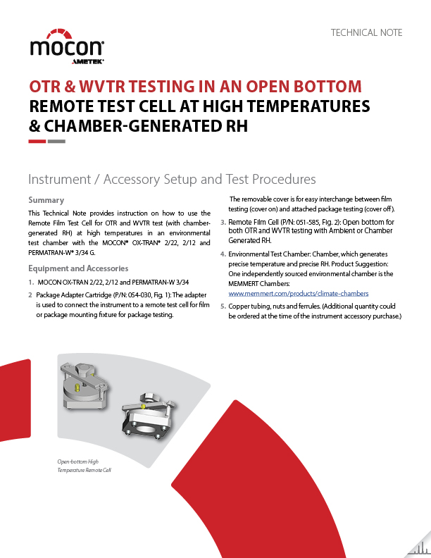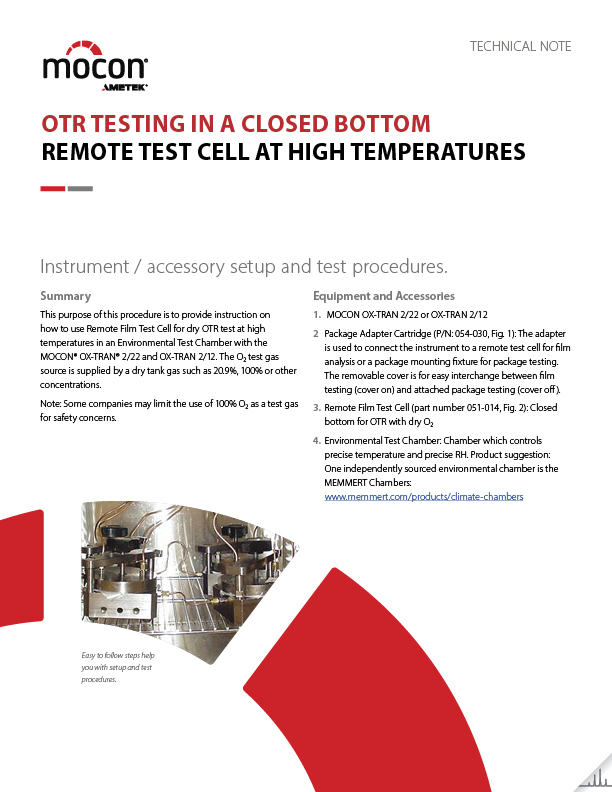 Prueba OTR en una celda de prueba remota de fondo cerrado a alta temperatura