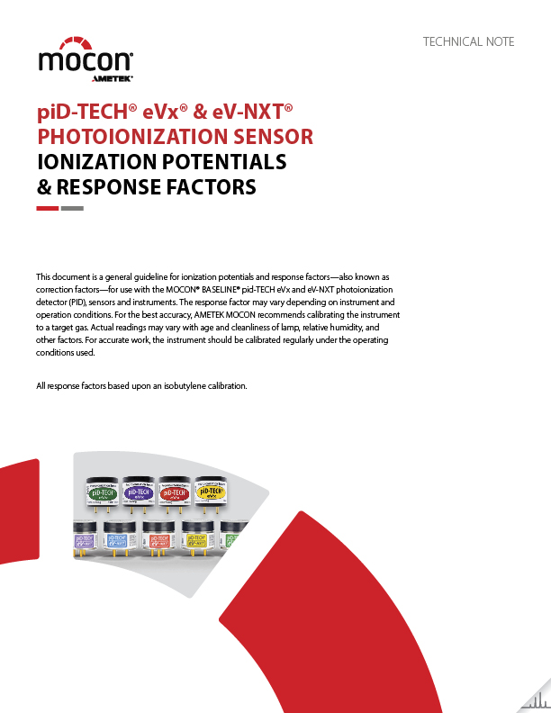 Sensores de fotoionización piD-TECH eVx y eV-NXT Potenciales de ionización y factores de respuesta