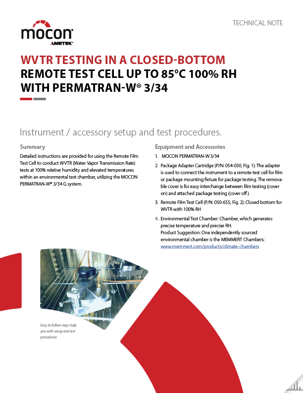 Prueba WVTR en una celda de prueba remota de fondo cerrado hasta 85 ° C 100% RH con PERMATRAN-W 3/34
