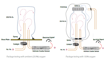 ASTM F2622 Este método permite utilizar una mayor variedad de tipos de sensores (coulométricos no absolutos), incluidos los sensores de oxígeno genéricos. En lugar de consumir todo el oxígeno, solo se analiza una fracción, lo que significa que el sensor debe calibrarse cuidadosamente y verificarse continuamente.
