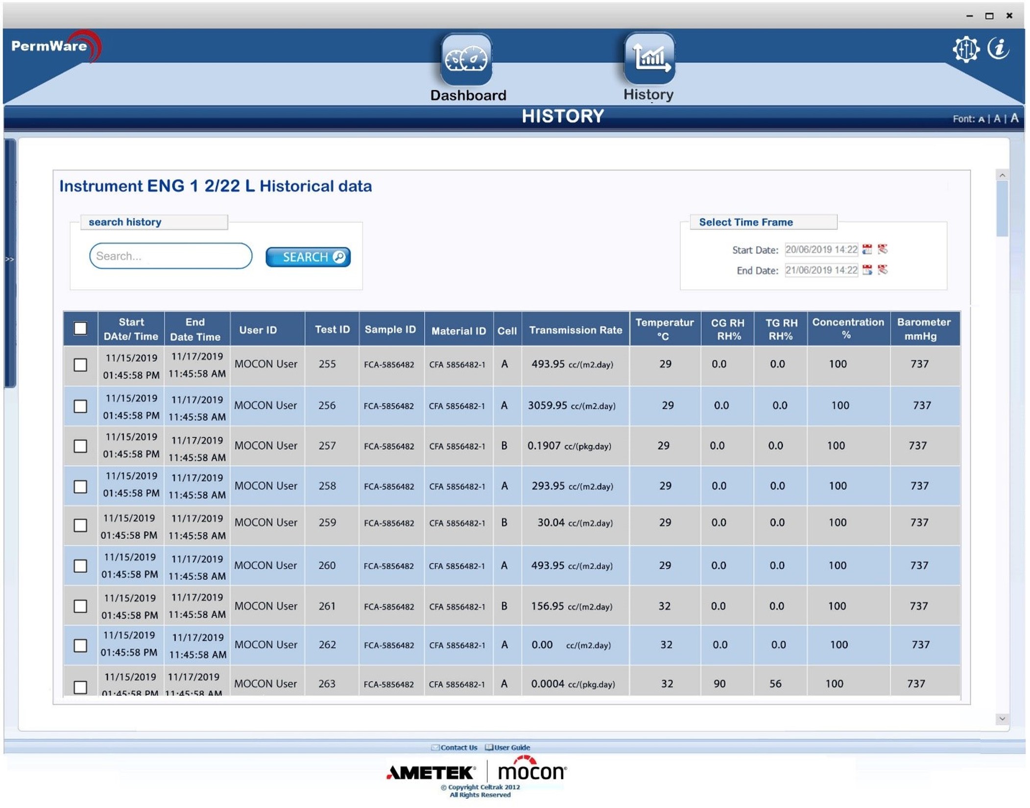Nuestro software PermWare es especialmente beneficioso para laboratorios que operan con múltiples instrumentos de permeación MOCON. Su base de datos centralizada de informes de pruebas cuenta con potentes herramientas de clasificación, filtrado y formato, lo que permite a los científicos extraer y analizar eficientemente los informes de pruebas deseados. El panel de control proporciona actualizaciones de estado en tiempo real, celda por celda, para todos los instrumentos conectados, mediante sencillos indicadores de color y pantallas digitales para parámetros críticos. Además, ofrece acceso remoto a cada pantalla de los instrumentos de última generación desde una PC central.