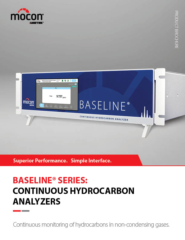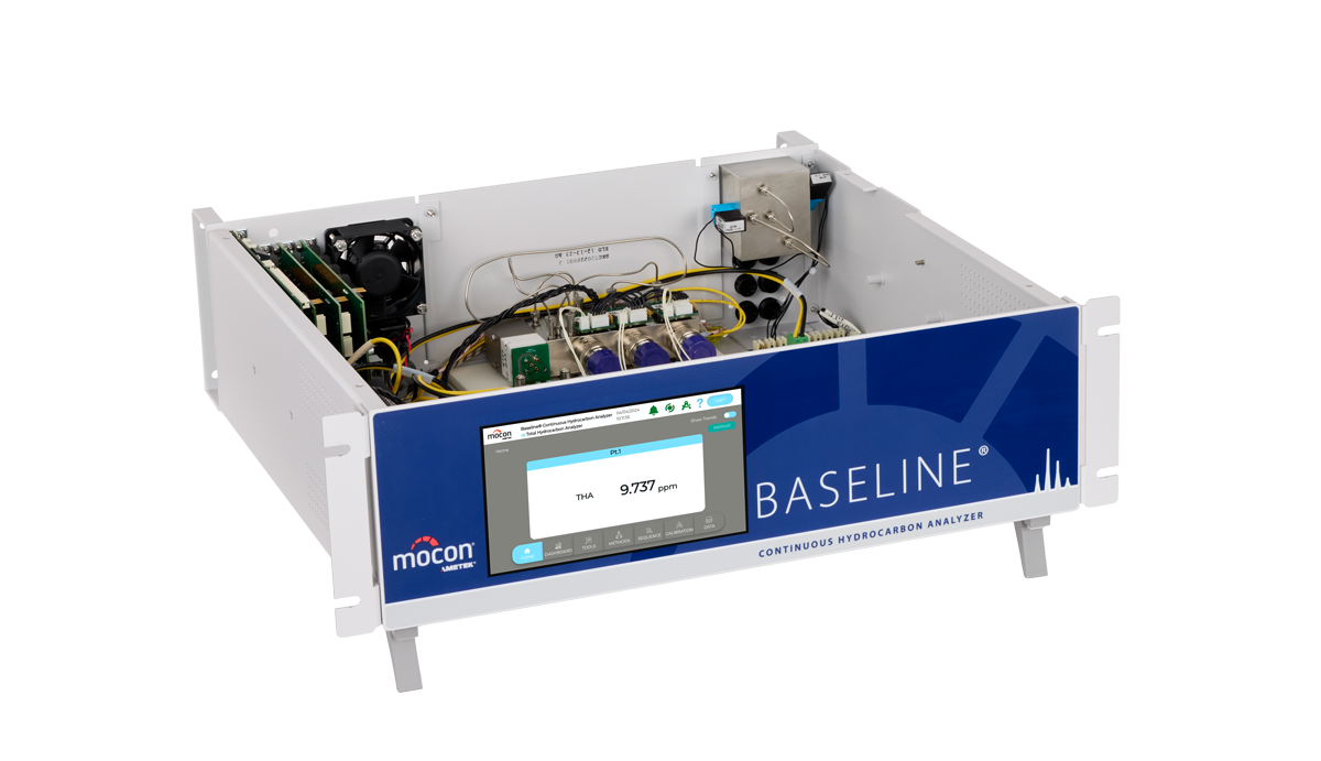 El analizador de metano/no metano BASELINE® CHA utiliza un detector de ionización de llama (FID) junto con un catalizador de oxidación que entra y sale de la corriente de muestra. El catalizador oxida todos los hidrocarburos excepto el metano para producir una medición de metano únicamente. Esta reacción catalítica depende de la presencia de oxígeno (O2) en la muestra. Luego, el valor de metano se resta de la concentración total de hidrocarburos para determinar la lectura de hidrocarburos distintos del metano. Las opciones de salida incluyen capacidades analógicas, digitales y lógicas.