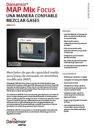 El Dansensor MAP Mix Focus presenta un caudal de capacidad media, adecuado tanto para máquinas de envasado por flujo con alimentación directa de gas, como para líneas de sellado de bandejas y envasado termoformado con depósitos intermedios.
