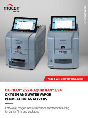 La serie OX-TRAN 2/22 de analizadores de alto rendimiento de 1 celda puede probar la tasa de transmisión de oxígeno (OTR) tanto en películas como en paquetes desde barreras de nivel bajo a moderado. Estos analizadores de bajo costo para paquetes y películas son fáciles de usar y ofrecen los tiempos de prueba más cortos disponibles en el mercado. Cuentan con 1 cartucho de prueba horizontal intercambiable que permite probar una amplia variedad de tamaños y tipos de muestras de manera fácil y precisa.