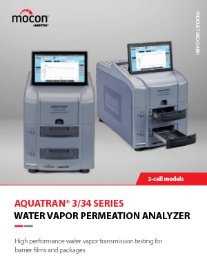 Los analizadores de alta tecnología AQUATRAN 3/34 pueden probar la tasa de transmisión de vapor de agua (WVTR) tanto en películas como en paquetes desde barreras bajas a moderadas. Cuentan con 1 cartucho de prueba intercambiable que permite probar una amplia variedad de tamaños y tipos de muestras de manera fácil y precisa.