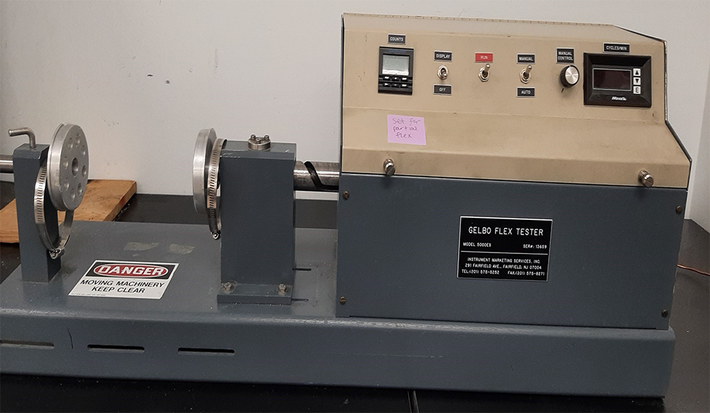 La prueba de Gelbo Flex crea un método repetible para estresar materiales y, a menudo, se usa como un "peor de los casos"; método de simulación para comprender el "desgaste" potencial de la película debido al procesamiento y envío.